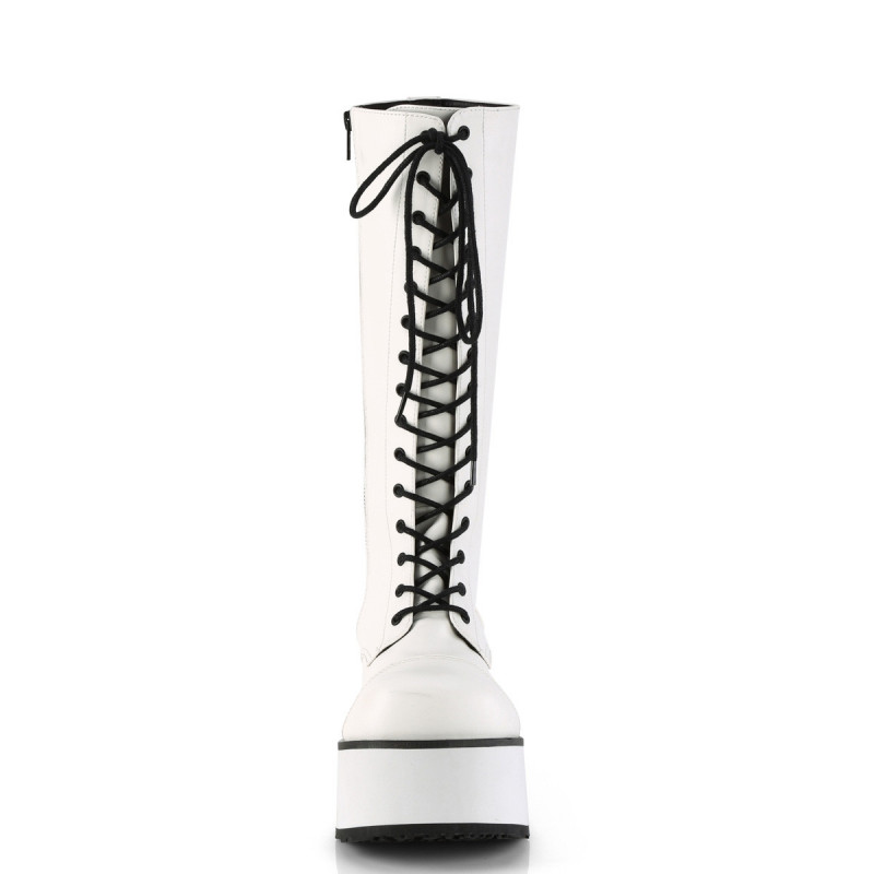 Marre du noir total ? Les bottes blanches Demonia Trashville-502 cassent tous les codes de la scène alternative. Avec leur "cuir" vegan blanc immaculé, leurs lacets noirs sur toute la hauteur et leur plateforme de 8,3 cm, ces bottes prouvent que le goth peut aussi être lumineux. Du contraste radical qui ne passe jamais inaperçu.