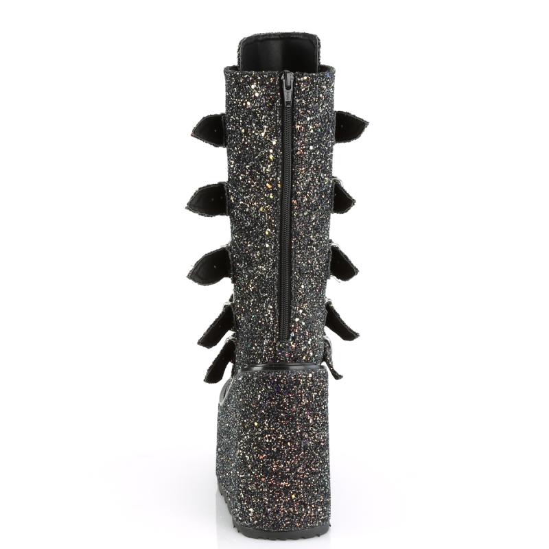 Tu veux capturer la nuit étoilée sur tes pieds ? Les bottes glitter multicolore Demonia Cult Swing-230G transforment tes jambes en constellations mobiles. Avec leur base noire parsemée de paillettes arc-en-ciel qui explosent sous la lumière et leurs 5 plaques cœur qui brillent comme des satellites, ces bottes créent un univers à part. Du cosmos punk qui hypnotise.