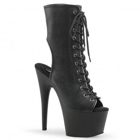 Cette splendide bottine noire mate texturée affirmera parfaitement votre style. Concevez une tenue de pole dance vibrante avec un body résille et un short de couleur blanche à franges révélant une allure spectaculaire à chaque mouvement. Pour des soirées inoubliables, mariez cette bottine à plateforme haut talon à un top en satin drapé et une jupe courte grise anthracite plissée afin d'incarner un style sophistiqué et séduisant.