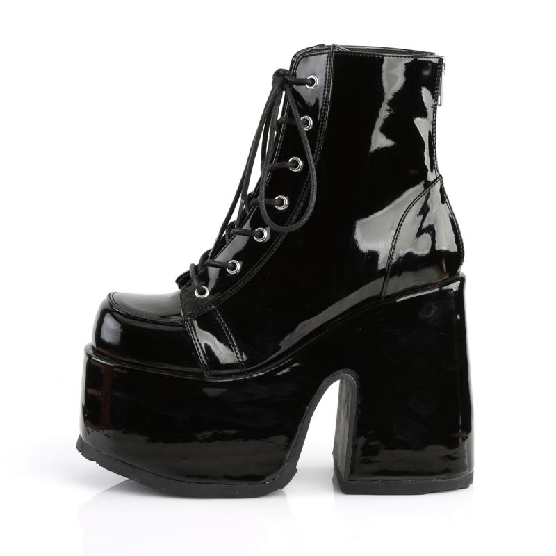Sublimez votre style avec ces bottines gothique noir vernis de la collection DemoniaCult femme.