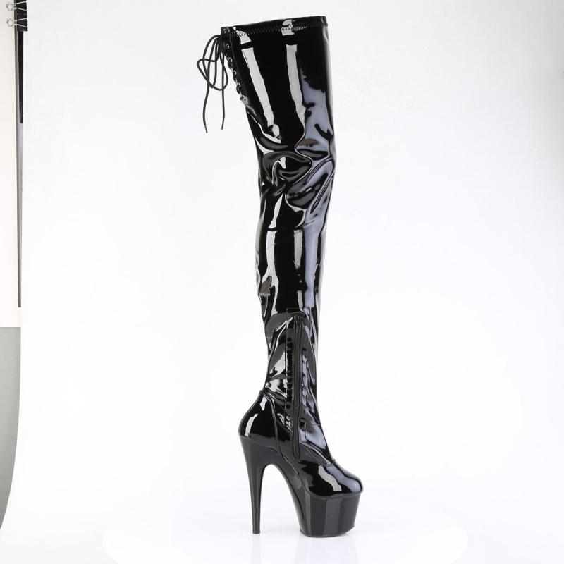 Disponible du 34.5 au 42 selon stock Pleaser. Coupe légèrement plus généreuse aux mollets et cuisses que d'autres modèle, pour un confort longue durée sans compression.