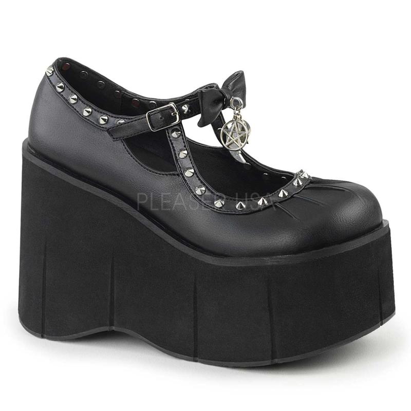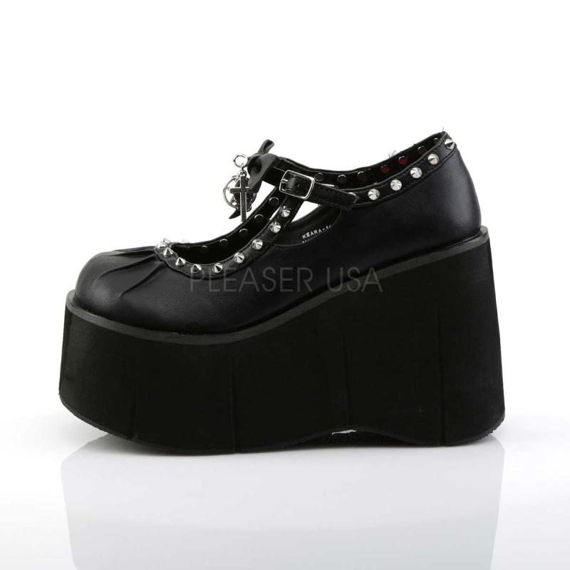 Tu veux mélanger cute et hardcore sans faire de compromis ? Les mary janes plateforme femme Demonia Kera-14 incarnent le clash ultime entre lolita et rebelle. Avec leur plateforme massive de 12,5 cm, leur T-strap cloutée, leur charm pentagramme qui balance au bout d'un nœud et leur silhouette mary janes reconnaissable, ces chaussures transforment le preppy en statement gothique. Du lolita qui mord.
