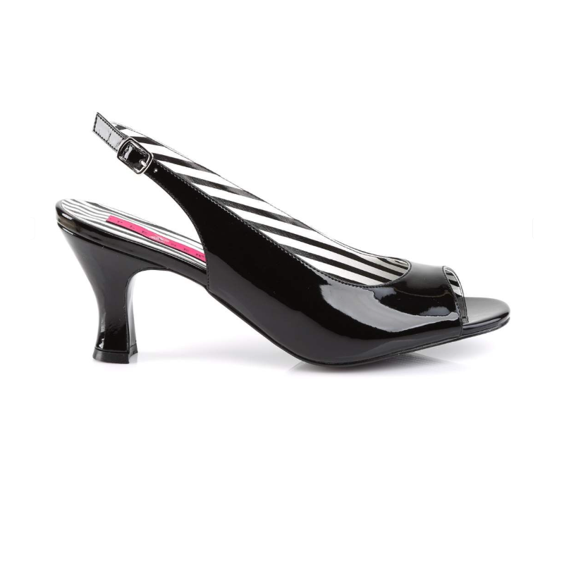 Cette sandale noire vernie se distingue par sa belle brillance et sa ligne élégante, idéale pour compléter facilement une tenue habillée ou quotidienne. Son talon bobine de 7,6 cm offre une hauteur féminine tout en conservant une bonne stabilité à la marche.