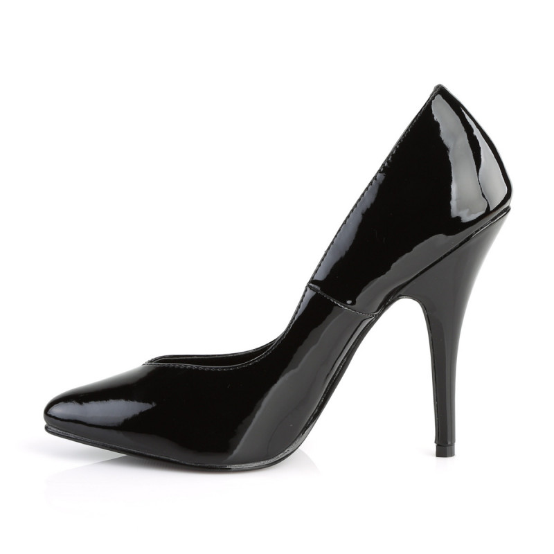 Affirmez votre élégance avec cet escarpin noir verni signé Pleaser. Son design épuré et son bout pointu soulignent la silhouette tandis que sa finition ultra brillante capte la lumière à chaque pas.