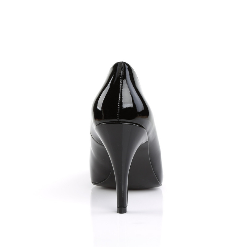 Escarpin haut talon de couleur noire vernis,DREAM-420, avec un léger décolté en "V" qui lui donne une allure classe et distingué. Ce modèle est disponible en grande pointure du 36 au 47,5 selon stock Pleaser. Modèle ayant des caractéristiques de construction vegan*