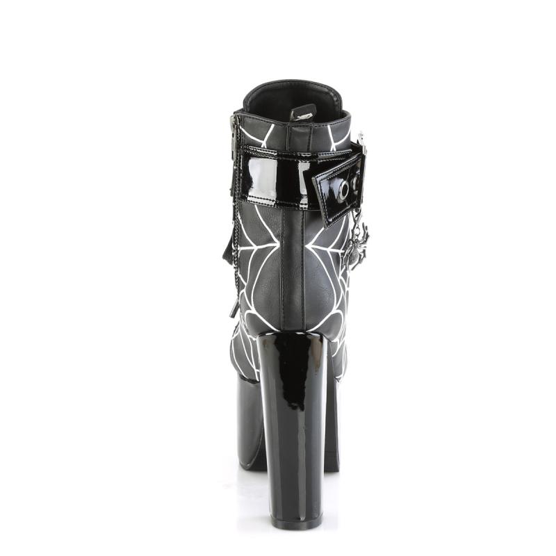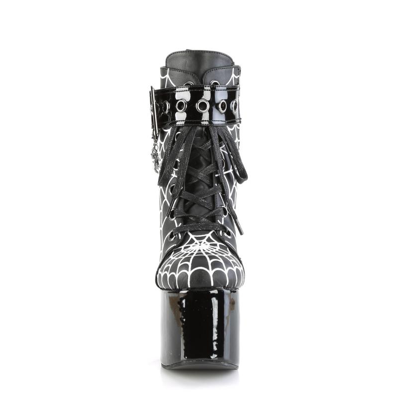 Prête à afficher ton côté dark sans compromis ? Les bottines toiles araignée Demonia Cult Torment-51 ne font pas dans la subtilité. Avec leurs broderies de toiles d'araignée blanches qui courent sur tout le cuir noir et leur boucle cercueil signature, ces boots racontent une histoire gothique à chaque pas. Du statement pur qui fascine ou repousse, jamais indifférent.