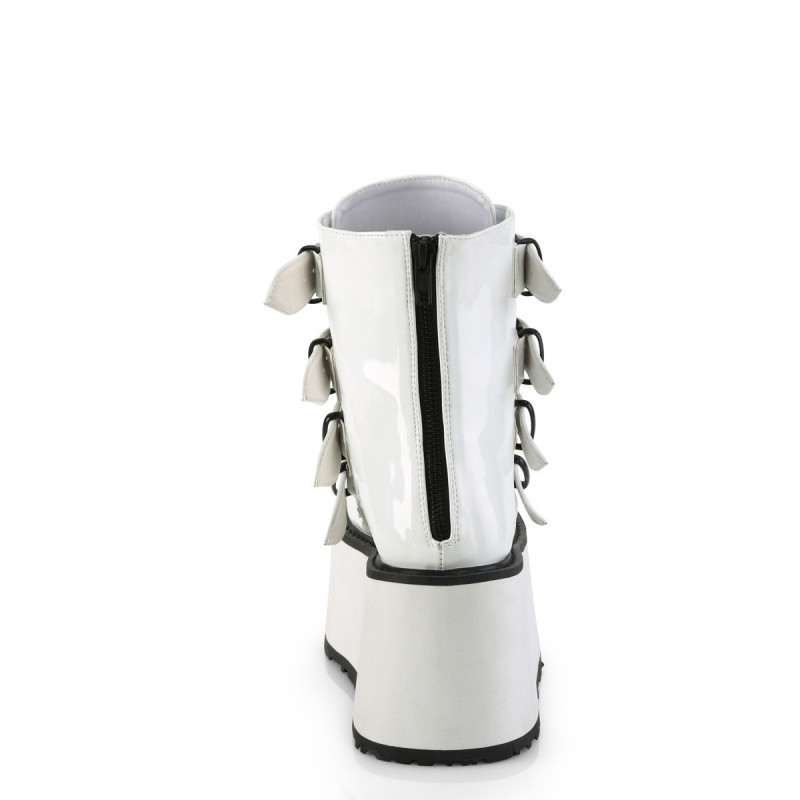 Envie de bottines qui changent de tête sous chaque lumière ? Les bottines holographiques goth Demonia Damned-105 jouent dans une autre catégorie. Blanc immaculé le jour, explosion de reflets arc-en-ciel dès que la lumière les touche — ces boots sont faites pour les scènes, les festivals et celles qui assument leur côté futuriste sans complexes.