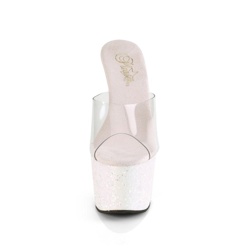 Cette superbe mule Pole Exotic transparente à plateforme opale à paillettes pailletée de la ligne ADORE de chez Pleaser sera parfaite pour progresser en pole exotic. Elle vous permettra d'ajouter de la sensualité à vos mouvements sensuels comme mouvements sensuels et dynamiques.
