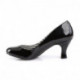 Classe et féminin, cet escarpin noir vernis à bout rond avec son talon bobine assorti, sa hauteur raisonnable permet d'envisager les soirées en tout confort. Petit détail son empeigne se croise sur le dessus, lui donnant une touche supplémentaire d'élégance. C'est un escarpin qui chausse grande taille du 39 au 46,5* et sa composition respecte l'esprit vegan.