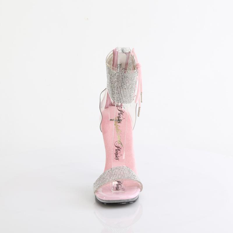 Conçue pour les soirées cocktail, mariages, cérémonies, réceptions mondaines et spectacles, cette sandale allie raffinement et confort prolongé. Le jeu de transparence rose poudré et les reflets argentés du talon métal créent une harmonie visuelle captivante, tandis que les strass diffusent une lumière féerique à chaque pas.