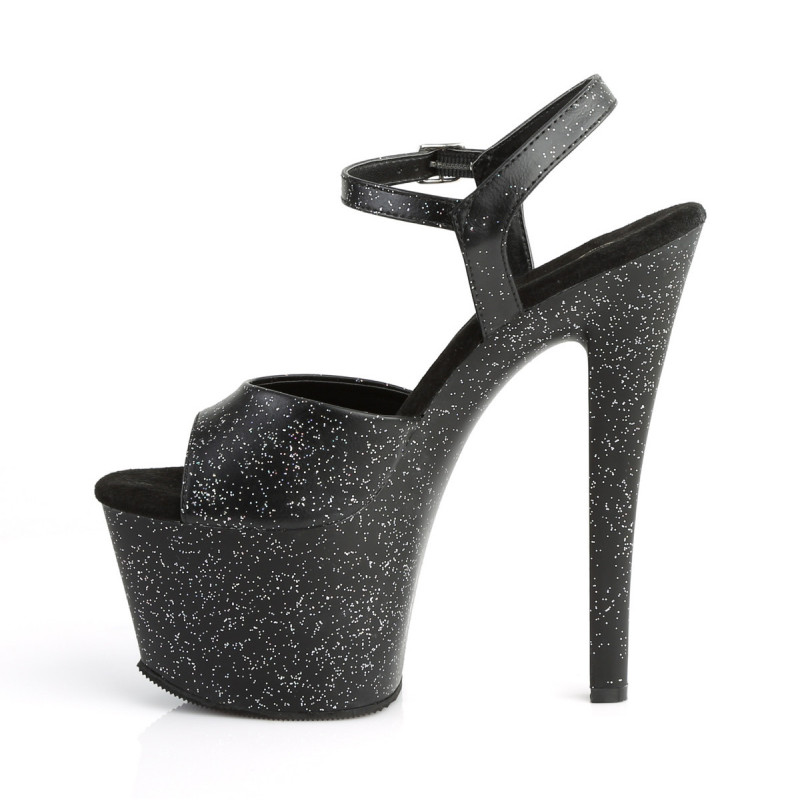 Cette superbe sandale Pole Dance noire à paillettes multicolores mate à plateforme assortie de la ligne SKY de chez Pleaser sera parfaite pour développer votre floorwork. Grâce à elle, vous pourrez ajouter de la créativité à vos transitions fluides entre figures et enchaînements au sol.