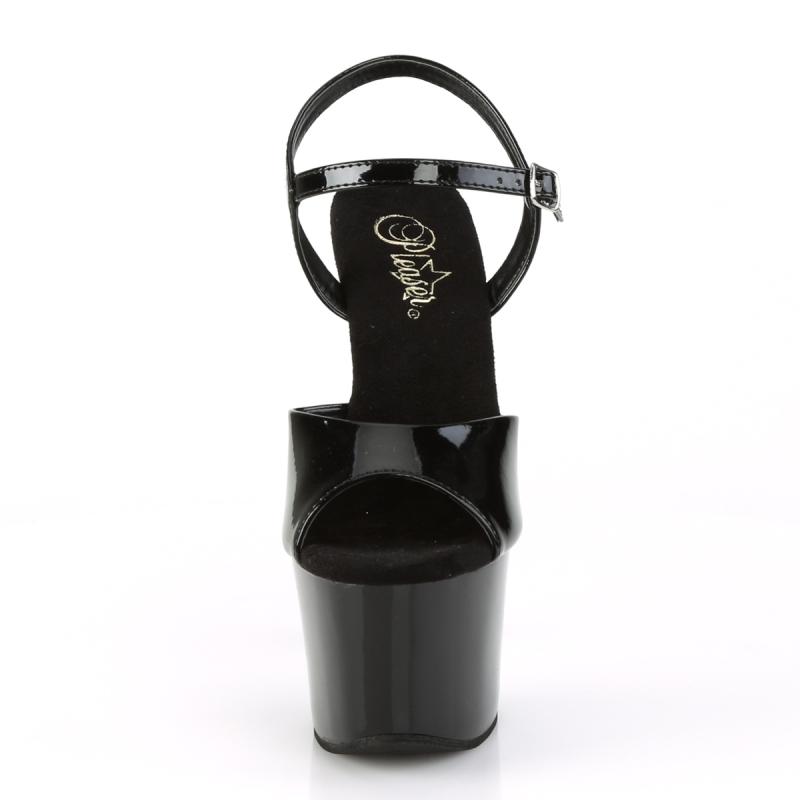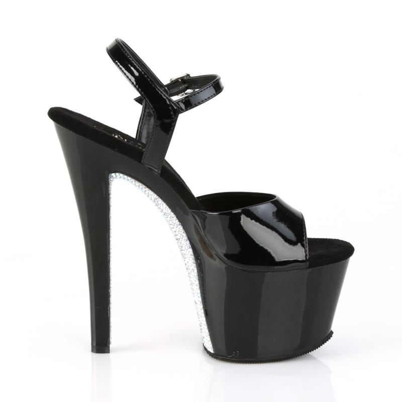 Cette magnifique sandale Pole Exotic noir verni à plateforme assortie avec strass de la ligne SKY est idéale pour les danseuses intermédiaires et confirmées en exotic dance. Avec elle, vos mouvements sensuels comme body rolls et hair flips exotic gagneront en brillance.