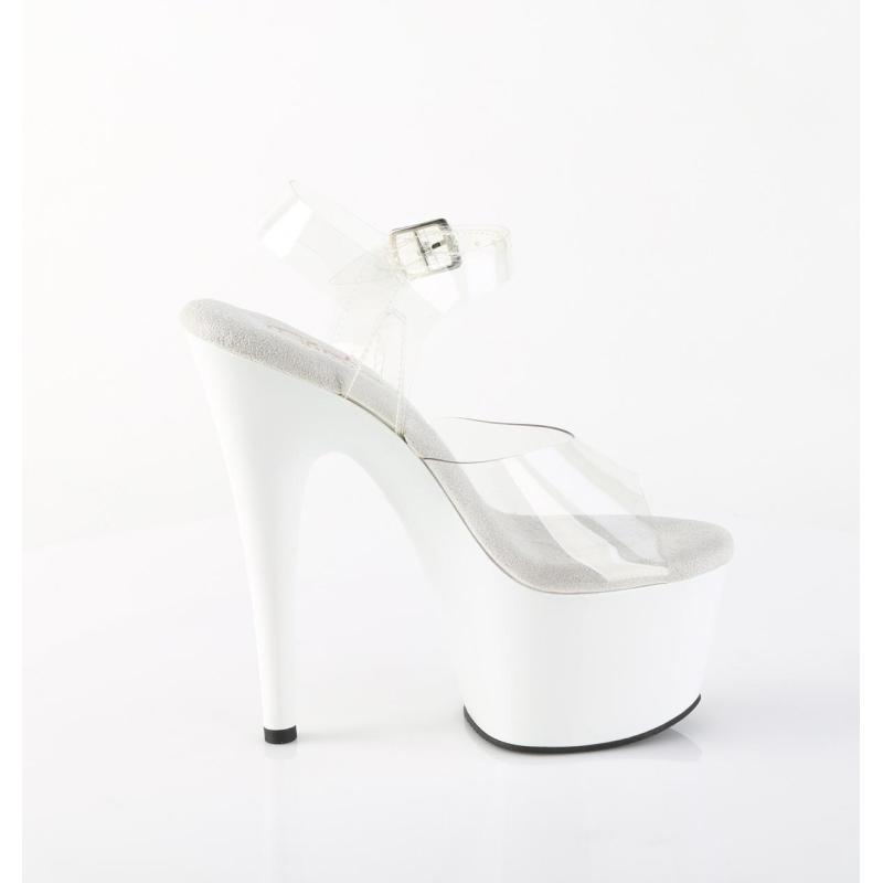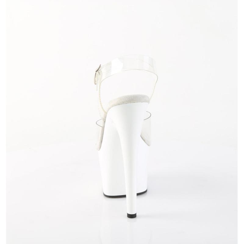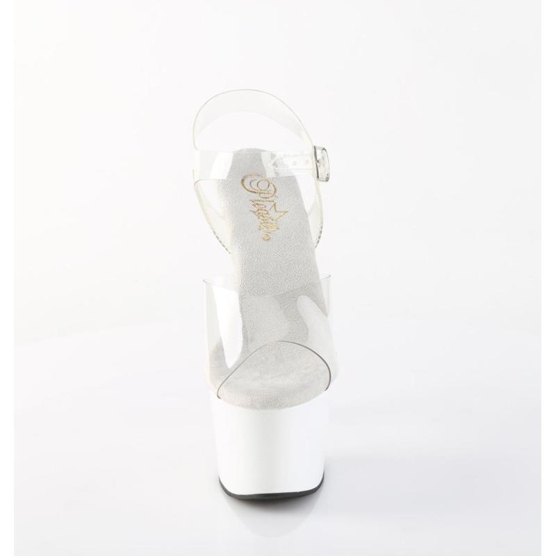 Cette superbe sandale Pole Dance transparente à plateforme blanche vernie de la ligne ADORE de chez Pleaser sera parfaite pour progresser tant à la barre qu'au sol. Avec elle, vos transitions et intermediate combo flows et combos fluides barre-sol gagneront en cohérence.